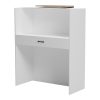 - Λειτουργικοτητα: Η υπερυψωμενη επιφανεια ειναι καταλληλη για την εξυπηρετηση των επισκεπτων, ενω ο εργονομικος σχεδιασμος επιτρεπει την ανετη τοποθετηση υπολογιστη και οτιδηποτε αλλο χρειαζεται στον εσωτερικο χωρο εργασιας.