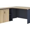 Γραφειο διευθυνσης με ενσωματωμενο γωνιακο αναστρεψιμο ερμαριο στον εντυπωσιακο χρωματισμο: Φυσικο – ανθρακι. Κατασκευασμενο απο υλικα υψηλων προδιαγραφων και συμφωνα με τις εργονομικες απαιτησεις του σημερα.