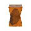 Αυτο το μοναδικο σκαμπο Clepsydra, με τον ιδιαιτερο σχεδιασμο σε σχημα κλεψυδρας, ειναι κατασκευασμενο απο μασιφ ξυλο suar. Καθε κομματι ειναι χειροποιητο και φερει τις φυσικες αποχρωσεις και τη ζεστασια του ξυλου, κανοντας το ιδανικο για να προσθεσει μια πινελια πολυτελειας και φυσικης κομψοτητας στον χωρο σας. Mπορει να χρησιμοποιηθει ως σκαμπο, βοηθητικο τραπεζακι η διακοσμητικο αντικειμενο.
