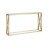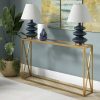 Ενα κομψο και συγχρονο επιπλο που συνδυαζει την λειτουργικοτητα με την αισθητικη. Η γυαλινη επιφανεια προσφερει μια αισθηση πολυτελειας και αντοχης, ενω ο μεταλλικος σκελετος απο χρυσο προσθετει μια πινελια λαμψης και εκλεπτυνσης. Οι καθαρες γραμμες και το γεωμετρικο σχεδιο του δημιουργουν ενα κομψο και διαχρονικο αισθητικο αποτελεσμα. Ιδανικη για να τοποθετηθει σε διαδρομο, σαλονι η υπνοδωματιο, προσθετοντας μια νοτα πολυτελειας σε καθε χωρο.