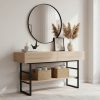 Αναβαθμιστε τον χωρο σας με αυτη την κομψη και λειτουργικη κονσολα, ιδανικη για την εισοδο, το σαλονι η το χωλ σας. Συνδυαζοντας ζεστη ξυλινη επιφανεια με ανθεκτικο μεταλλικο σκελετο σε μαυρο ματ, προσφερει ενα μοντερνο βιομηχανικο στυλ που ταιριαζει αρμονικα σε καθε συγχρονη διακοσμηση.