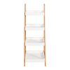 Ραφιέρα δαπέδου Leby pakoworld μπαμπού-mdf σε λευκή-φυσική απόχρωση 35x34x98εκ