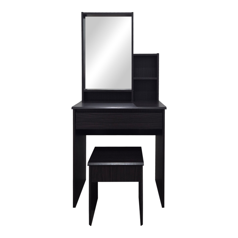 Η τουαλετα κρεβατοκαμαρας Larnia προσφερει ενα σημειο εστιασης πολυτελειας και απολυτη οργανωση για τα προϊοντα περιποιησης και ομορφιας σας. Η σκουρα, επιβλητικη αποχρωση Wenge προσδιδει δραματικο και εκλεπτυσμενο στυλ, ιδανικο για κρεβατοκαμαρες με συγχρονη η κλασικη αισθητικη. Αποκτηστε τωρα αυτο το κομψο και λειτουργικο συνολο και αναβαθμιστε την καθημερινη σας ρουτινα με μια νοτα ζεστου μυστηριου!