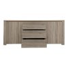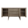 Διαθετει δυο πλαϊνα ντουλαπια με εσωτερικα ραφια, ιδανικα για την αποθηκευση αντικειμενων που θελετε να διατηρησετε διακριτικα. Στο κεντρο, τρια ευρυχωρα συρταρια παρεχουν επιπλεον αποθηκευτικο χωρο για μικροτερα αντικειμενα, βοηθωντας στη διατηρηση ενος τακτοποιημενου περιβαλλοντος. Η επιφανεια του προσφερει αφθονο χωρο για την τοποθετηση διακοσμητικων στοιχειων, φωτιστικων η αλλων αντικειμενων. Η κατασκευη απο υψηλης ποιοτητας ξυλο σε φυσικη αποχρωση προσδιδει μια ζεστη και φιλοξενη αισθηση στον χωρο σας, ενω η στιβαρη της κατασκευη εγγυαται μακροχρονια ανθεκτικοτητα. Αυτο το ευελικτο επιπλο ειναι ιδανικο για το σαλονι, την τραπεζαρια η οποιονδηποτε αλλο χωρο χρειαζεται επιπλεον αποθηκευτικο χωρο με στυλ.