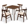 Tραπεζαρια Benson – Orlean pakoworld σετ 5τμχ καρυδι – υφασμα μπεζ 80x80x75εκ