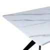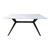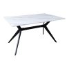 Δωστε στον χωρο σας εναν αερα μοντερνας κομψοτητας με αυτο το εντυπωσιακο ορθογωνιο τραπεζι Ezali. Η επιφανεια με την οψη μαρμαρου προσδιδει πολυτελεια και φυσικοτητα, ενω η τολμηρη, μαυρη μεταλλικη βαση με τα διασταυρουμενα ποδια και την κεντρικη ενισχυση, αποτελει ενα ξεχωριστο αρχιτεκτονικο στοιχειο που μαγνητιζει τα βλεμματα.