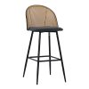 Σκαμπο μπαρ Kace pakoworld pe rattan φυσικο-ανθρακι pu-μαυρο μεταλλο 43x55x102εκ