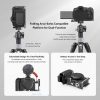 Ασφαλιζεται με κατω βιδα 1/4″-20 και πλευρικα σημεια κλειδωματος, ενω τα λαστιχενια ενθετα αποτρεπουν γρατζουνιες. Ο ανοικτος σχεδιασμος επιτρεπει πληρη προσβαση στα πληκτρα, τις θυρες, τις καρτες, την ανακλινομενη οθονη και την μπαταρια. Διαθετει σπειρωματα, οπη τυπου ARRI, cold shoe, πλαϊνη NATO rail, υποδοχη QD και βαση Arca-Swiss για αμεση μεταβαση μεταξυ ληψης στο χερι, σε τριποδο η gimbal.