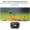Απολαυστε κοντινες ληψεις φωτογραφιων και βιντεο με το DJI Pocket, αποκτωντας αυτον τον ειδικο φακο μακροεντολης 10x απο την K&F Concept. Το φιλτρο αυτο ασφαλιζει στη θεση του μεσω μαγνητων και επιτρεπει στο Pocket 3 να εστιαζει μεταξυ 20-40cm για εξαιρετικα κοντινα πλανα. Το γυαλι του φιλτρου ειναι επισης πολλαπλης επιστρωσης για να μειωνει την επιδραση των αντανακλασεων στην εικονα σας και εχει επιστρωσεις ανθεκτικες στο νερο και τις γρατσουνιες. Η κατασκευη αλουμινιου εξασφαλιζει ανθεκτικοτητα καθ' ολη τη διαρκεια ζωης του προϊοντος. Επιπλεον, περιλαμβανεται ενα γυαλινο προστατευτικο οθονης για το Pocket 3.