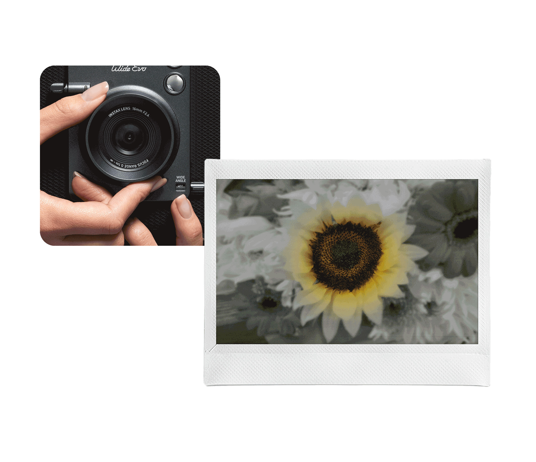 Διαθετοντας τον πιο ευρυγωνιο φακο μας μεχρι σημερα, η υβριδικη φωτογραφικη μηχανη στιγμιαιας ληψης instax WIDE Evo™ διευρυνει την οπτικη σας γωνια για να αποτυπωσει ολη τη δραση, οπως αυτη συμβαινει. Και με τη χρηση ενος μονο συμπαγους φακου, ειτε ειναι ενεργοποιημενη ειτε απενεργοποιημενη η λειτουργια ευρειας γωνιας, η ποιοτητα της εικονας ειναι πραγματικα εντυπωσιακη.